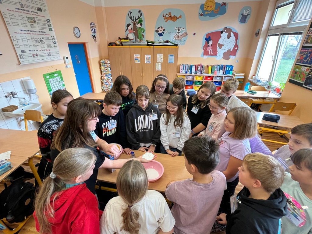 V listopadu 2025 jsme pořádali ve spolupráci s organizací Veselá věda projektové dny s tématy: voda, lidské smysly, chemie v kuchyni, barvy, elektřina.