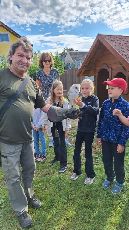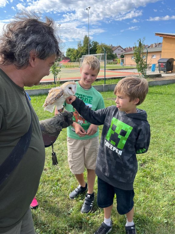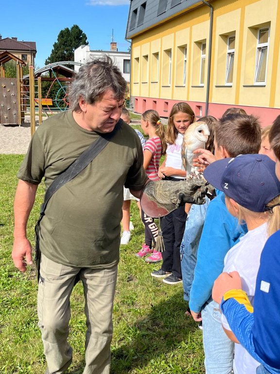 V září k nám opět přijel pan Vondruška a předváděl nám letové ukázky dravců a sov. Děti se vždy z jeho výkladů dozví něco nového a poučného.