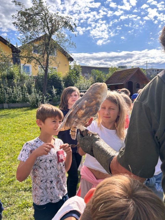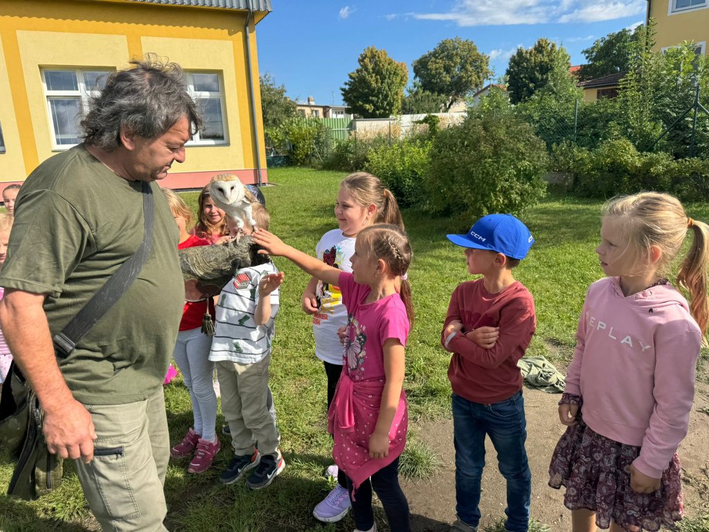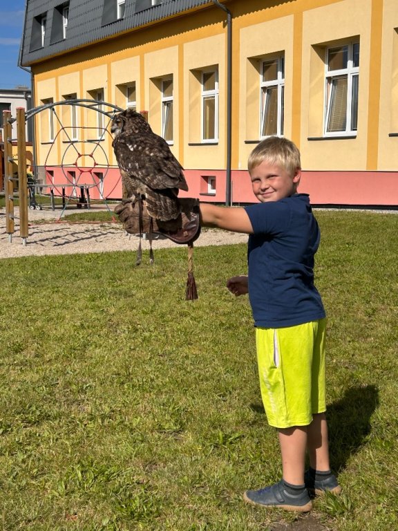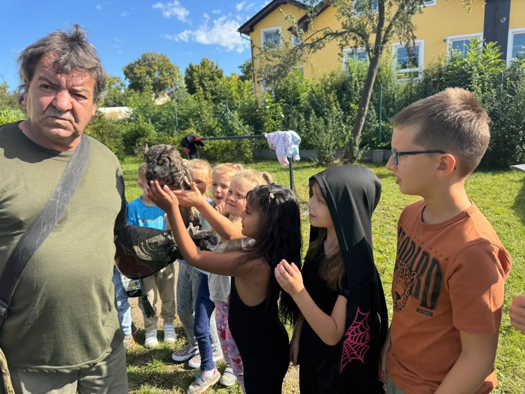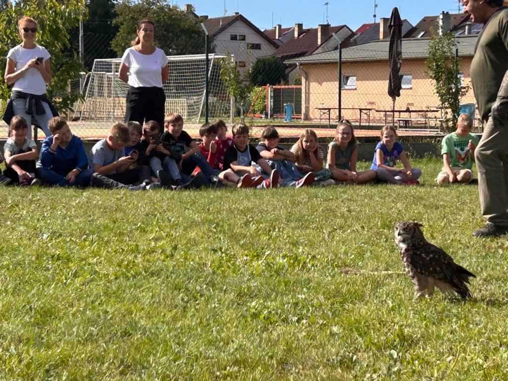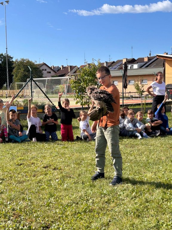 V září k nám opět přijel pan Vondruška a předváděl nám letové ukázky dravců a sov. Děti se vždy z jeho výkladů dozví něco nového a poučného.