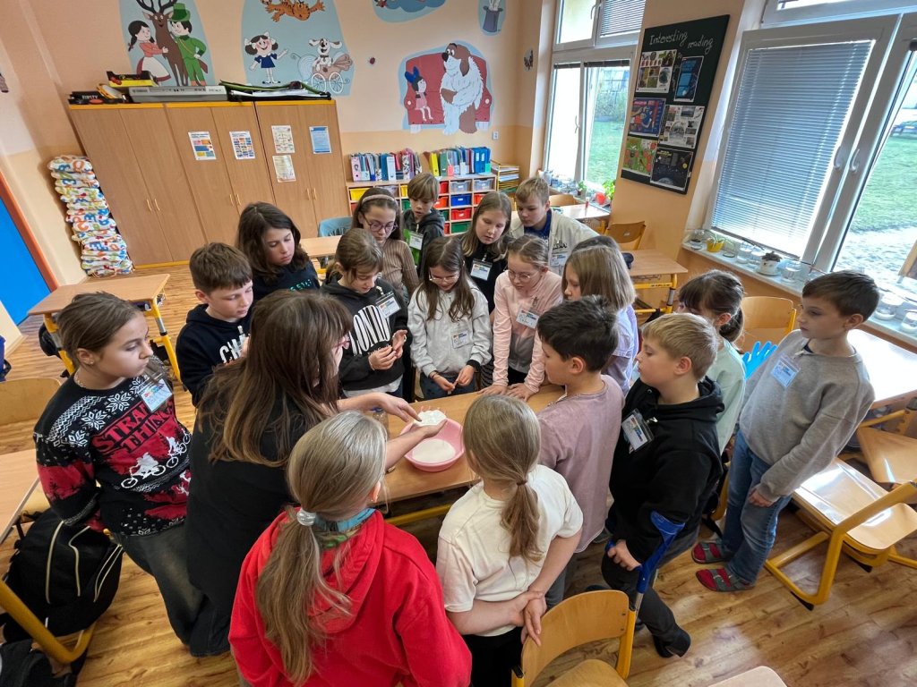 V listopadu 2025 jsme pořádali ve spolupráci s organizací Veselá věda projektové dny s tématy: voda, lidské smysly, chemie v kuchyni, barvy, elektřina.